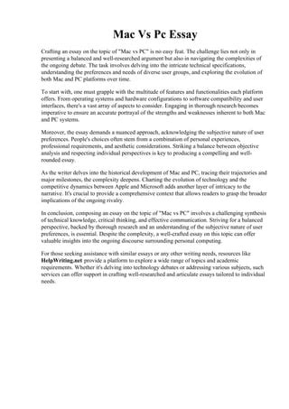 Read mac vs pc essay paper Doc online is a convenient and frugal way to read mac vs pc essay paper you love right from the comfort of your own home. Yes, there sites where you can get Doc "for free" but the ones listed below are clean from viruses and completely legal to use.